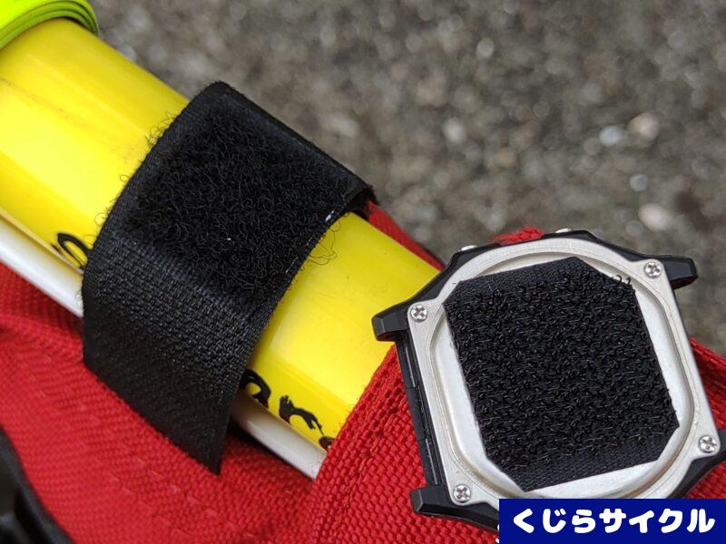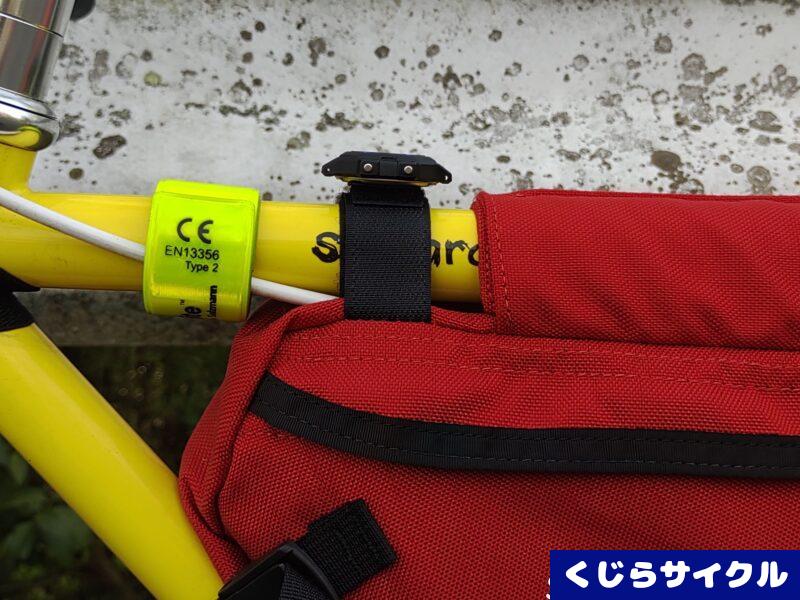 ベルトを外して、面ファスナーで車体に取り付ける方法もある。僕はJanddのフレームバッグに取り付けた。